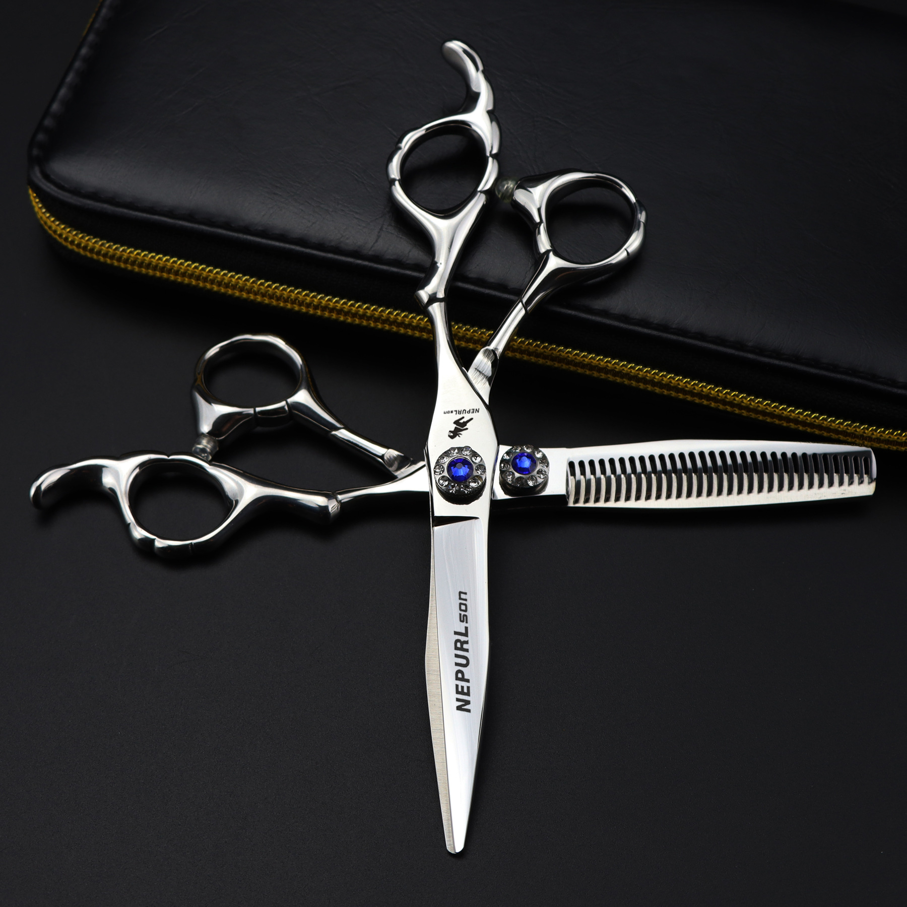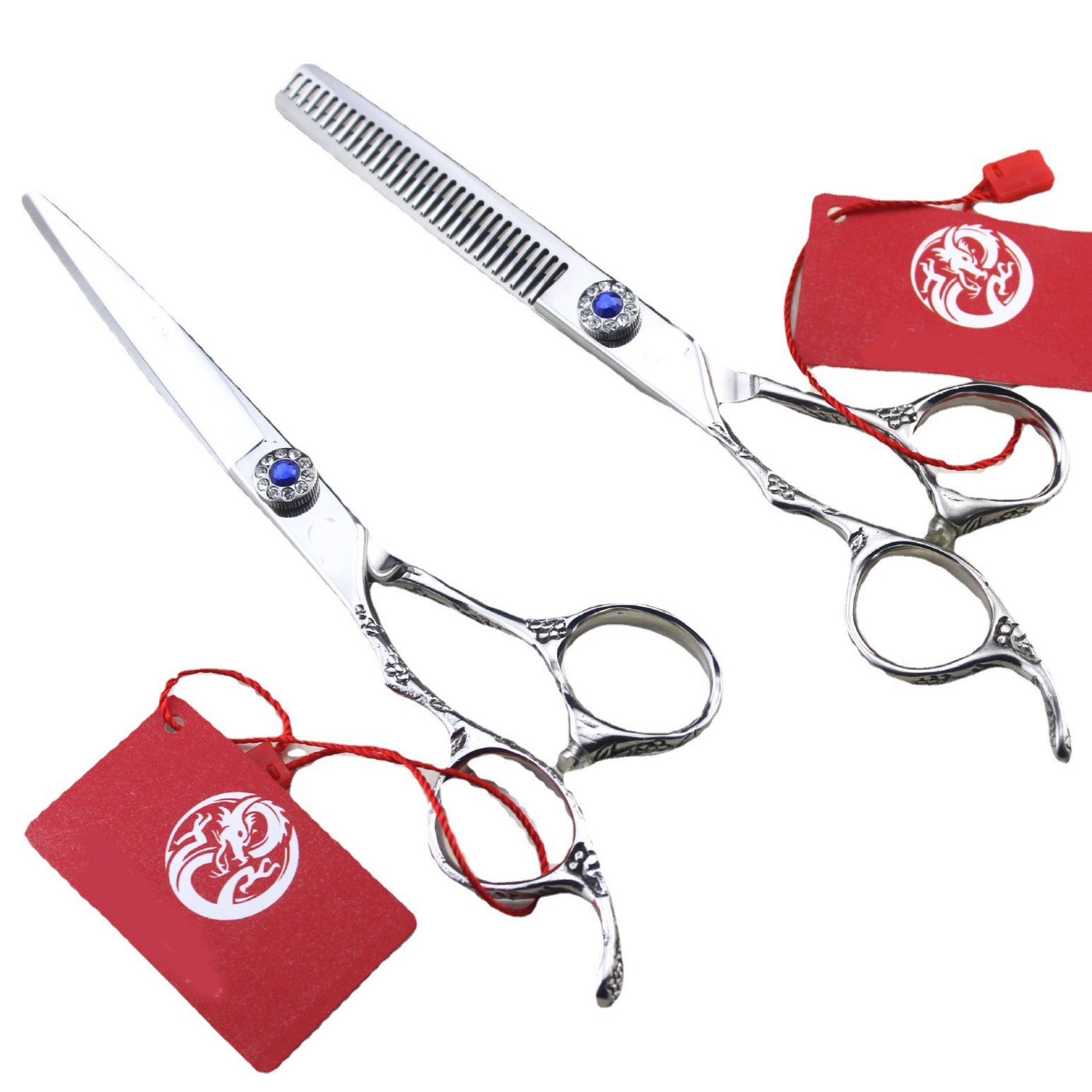 6.0inch 斜めテール理髪はさみ、フラットはさみ、歯付きはさみセット、フラット+歯付き+バッグ、ロゴのカスタマイズ可能