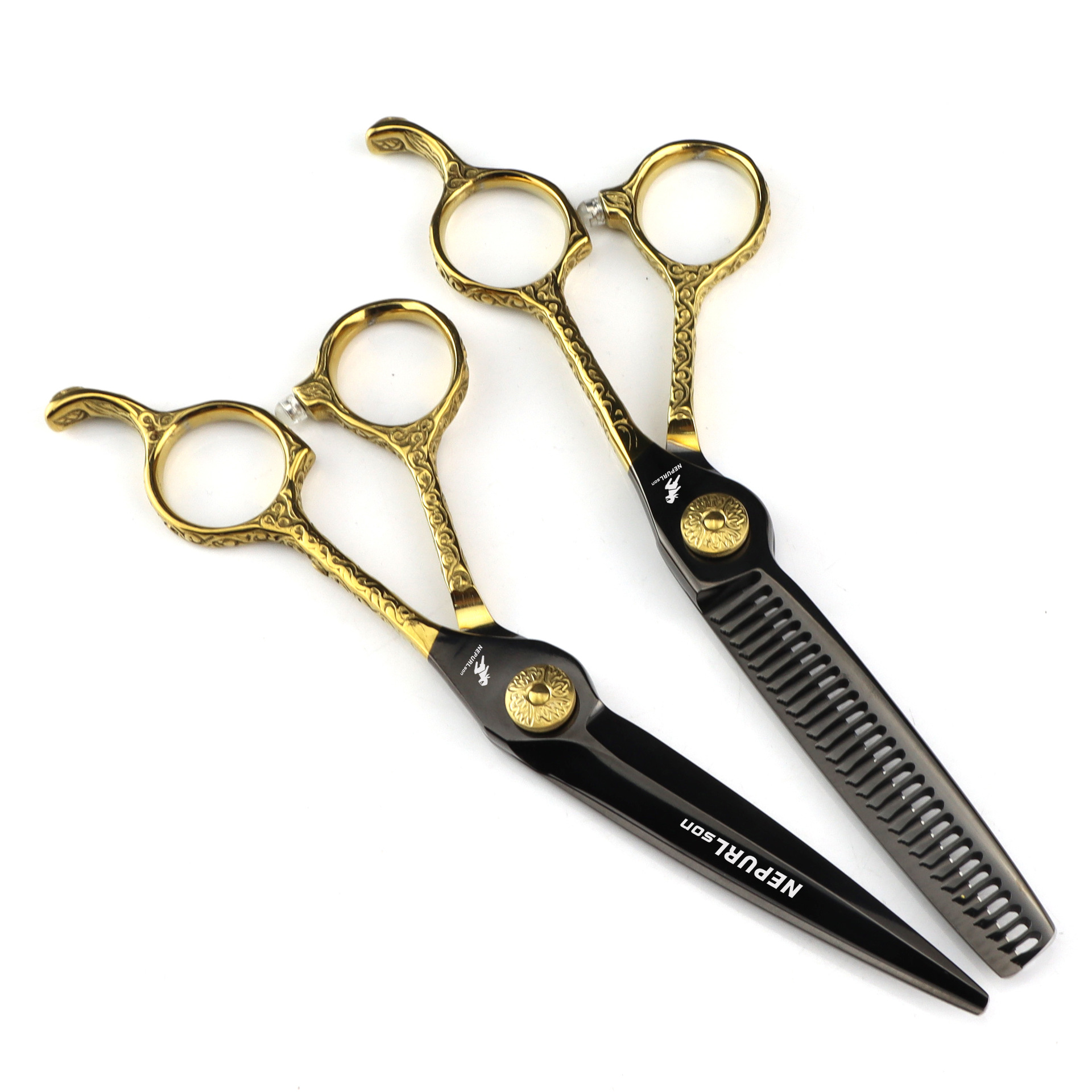6.0厚花柄宝石金美髪ハサミ理髪カット劉海ハサミ