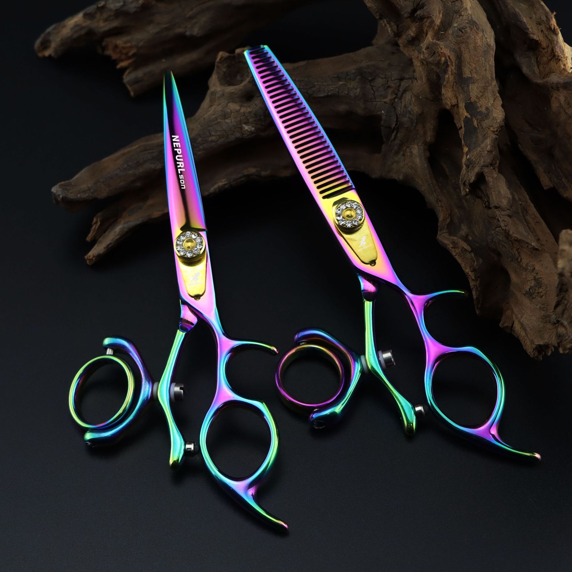 6.0インチカラー美容カットセット (平カット + 歯切り + バッグ + メンテナンスオイル + 調節シート櫛) sxlc