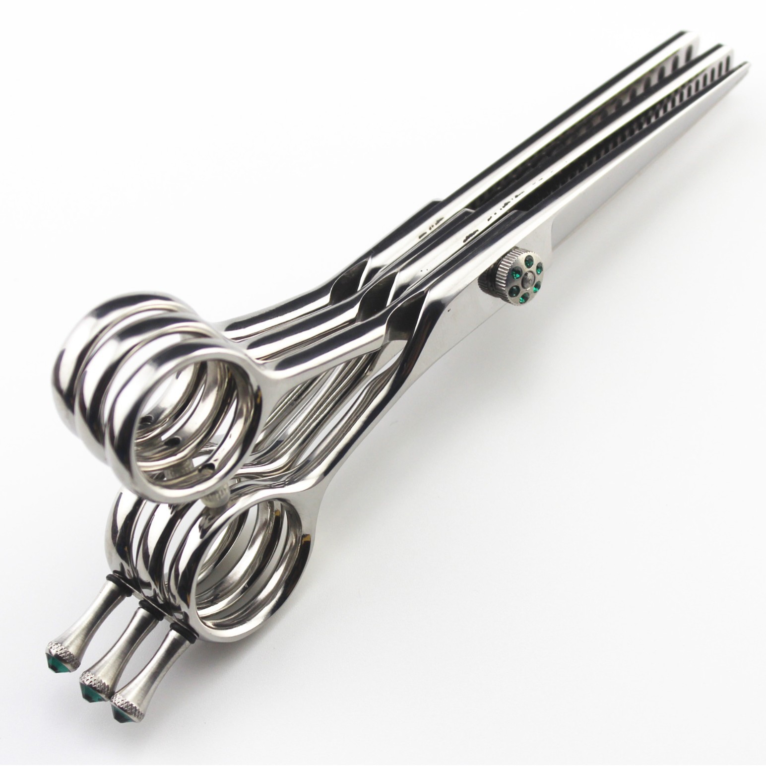 高級美髪ハサミの変な型は3本の組み合わせを切って薄く切って平らにします + 歯 + 歯