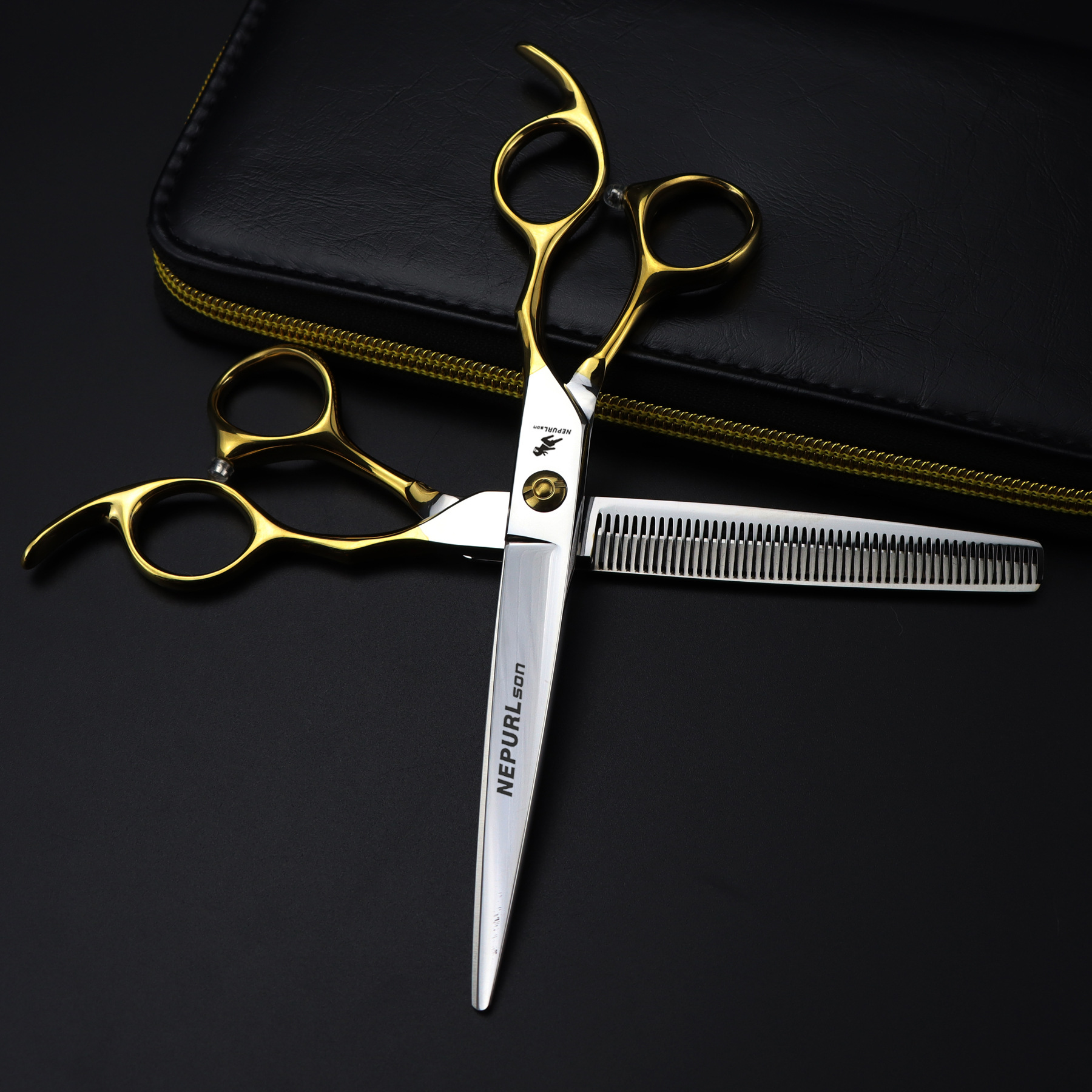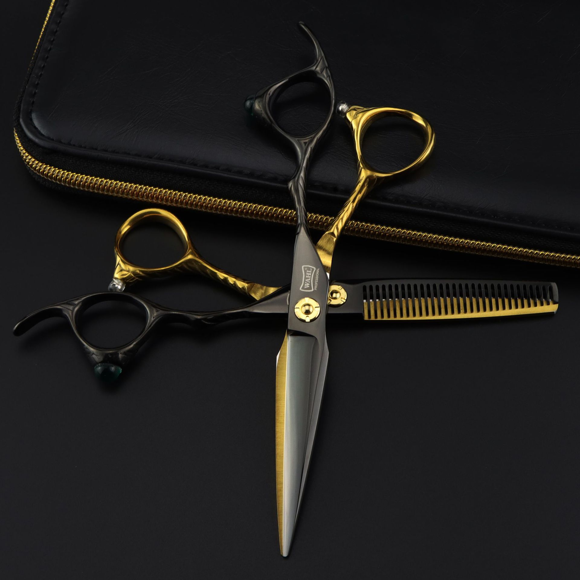 6.0インチ左手美髪ハサミセット (平ハサミ + 歯ハサミ + バッグ + メンテナンスオイル + 調節シート)
