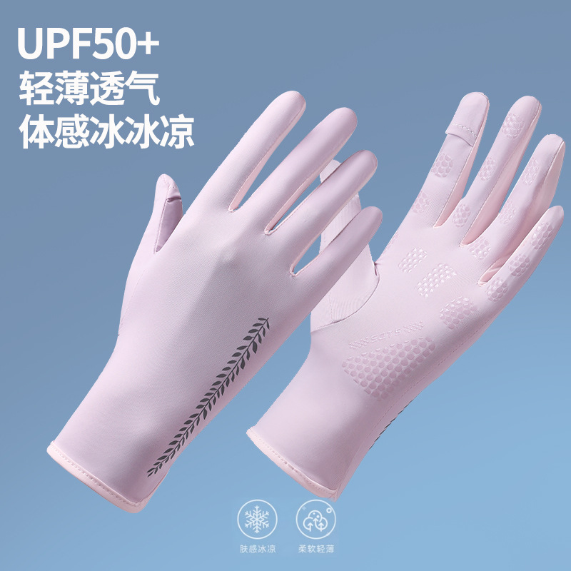 氷糸日焼け止め手袋女性夏の薄手紫外線防止運転用電気自動車用滑り止め袖カバータッチパネル