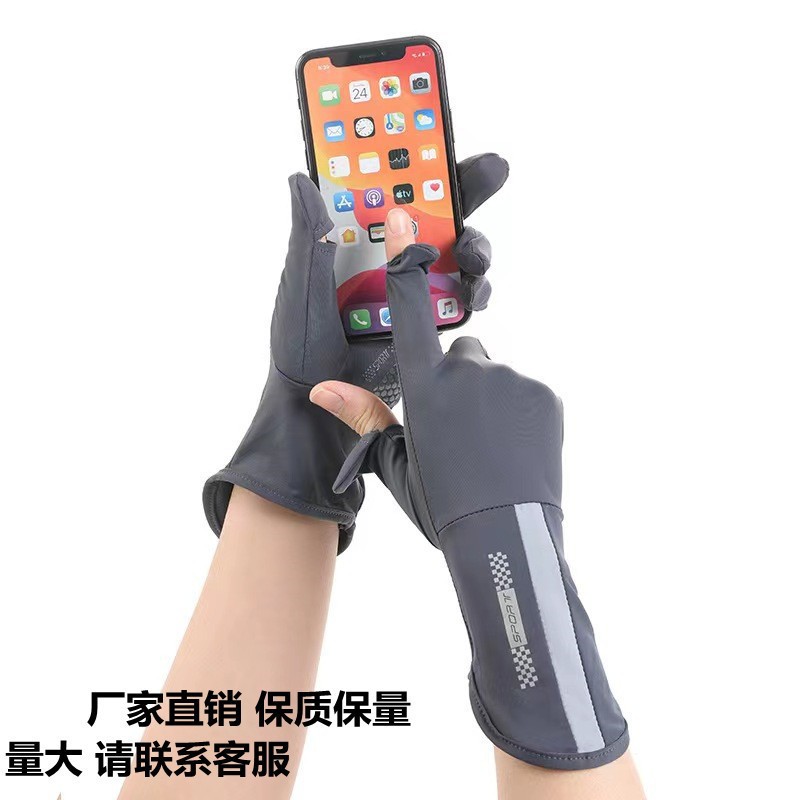日焼け止め手袋女性紫外線防止夏の薄い氷糸手袋滑り止めタッチパネル運転手袋露二指