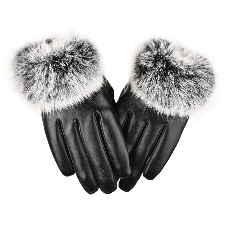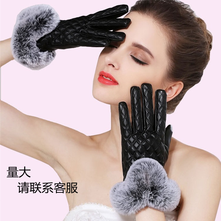 秋冬の女性のタッチパネルの手袋の保温の皮の手袋の防風とベルベットの小さいuのウサギの毛の口の騎乗の百合のショッピングl