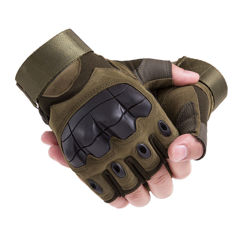 春と秋の屋外でスポーツに乗るフィットネス軍の滑り止め耐摩耗性格闘戦術半指手袋軍グリーン