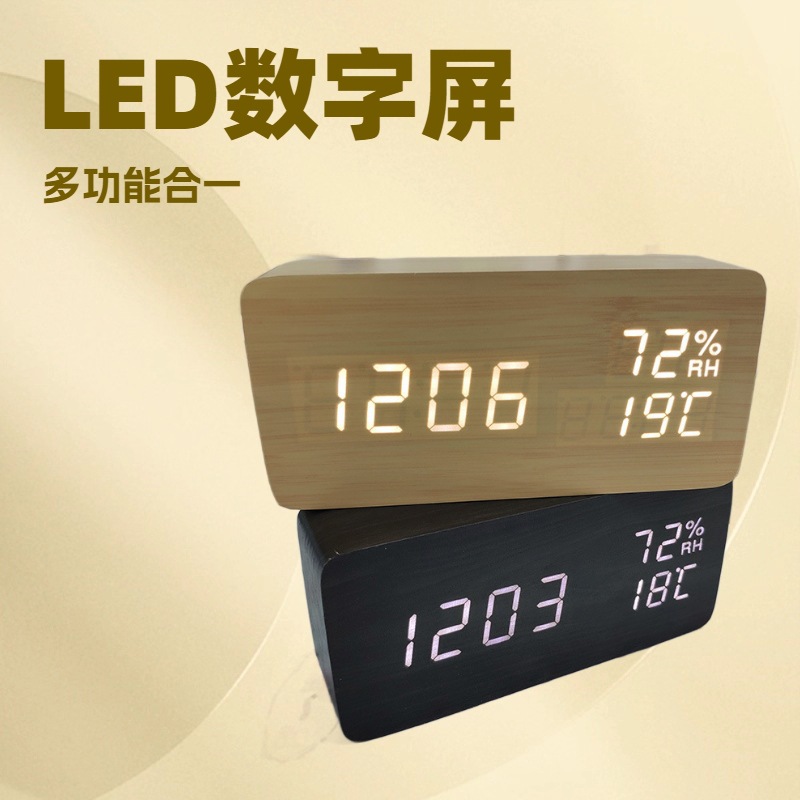 目覚まし時計ベルクリエイティブサイレント電子時計ファッショナブルな LED 木製時計音声起動シルクスクリーンロゴギフト中三角形