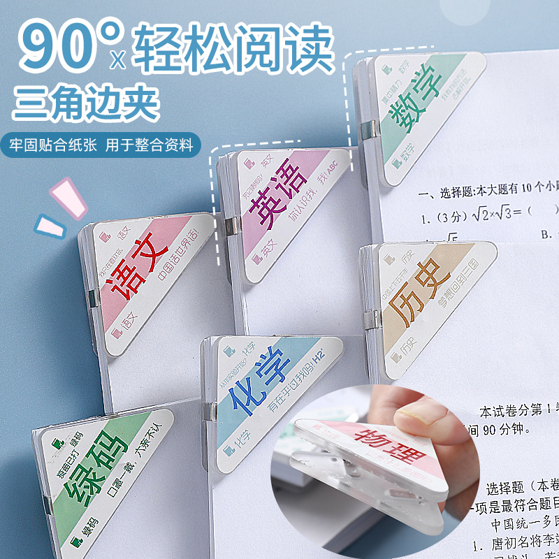 試験用紙クリップ9科目分類三角クリップ多機能エッジクリップ試験用紙クリップ収納整理ブックブックコーナー防止