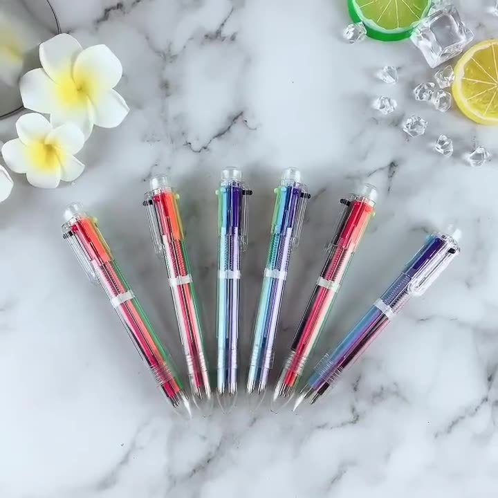 0.7mmボールペン卸売りカラーかわいい多色プラスチックペン六色円柱取り外し可能なペン0.5芯