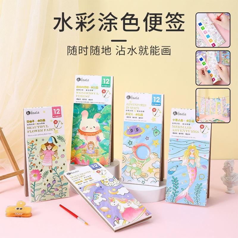 水彩塗り絵は絵の具を持っています。落書き画紙を持っています。