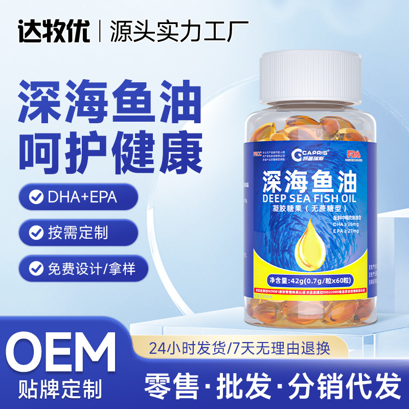 深海魚油ソフトカプセル無ショ糖中高年DHA人はゲル糖源メーカー卸売りを食べます。