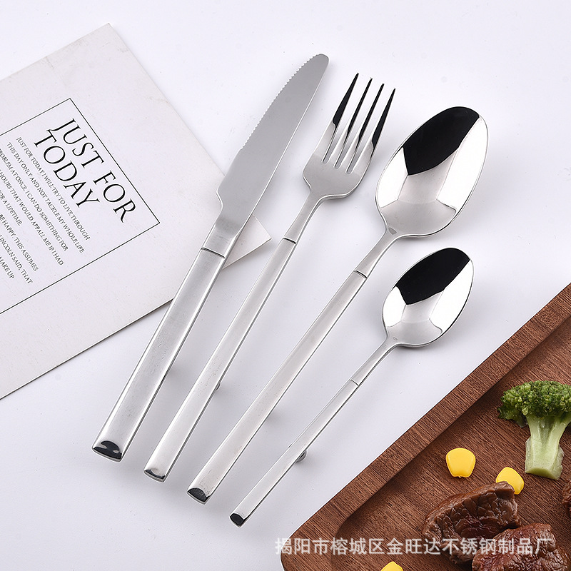 ステンレス曲げ柄食器ラッキーボックスシルバーナイフフォークスプーンセットシンプルなホテルの西洋のカトラリーluckybox