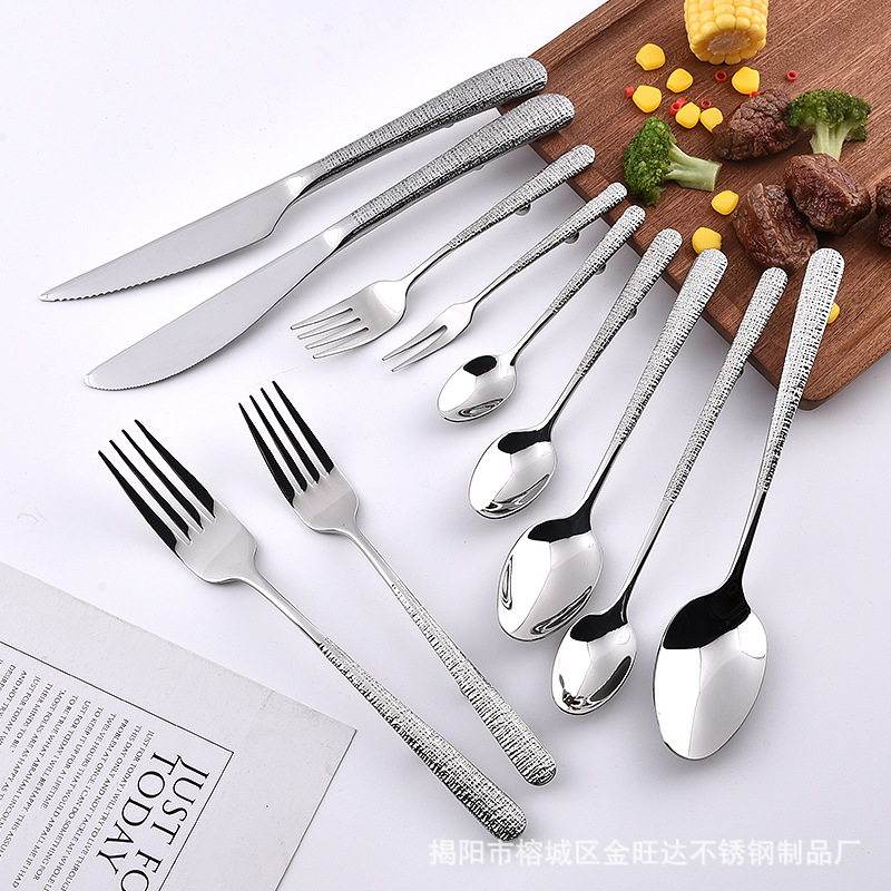 ステンレスハンマービーズ付き食器フォークナイフスプーンステーキナイフデザートスプーン果物フォーク礼箱セット