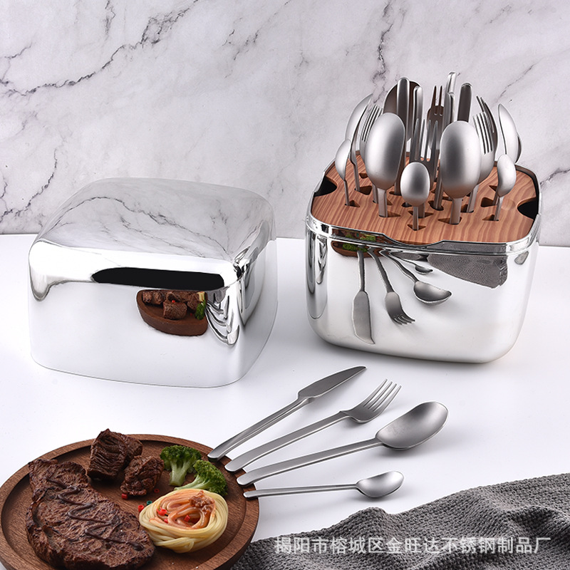 ステンレス曲げ柄食器幸運箱銀色現代シンプルステンレス食器24点セットプレゼント