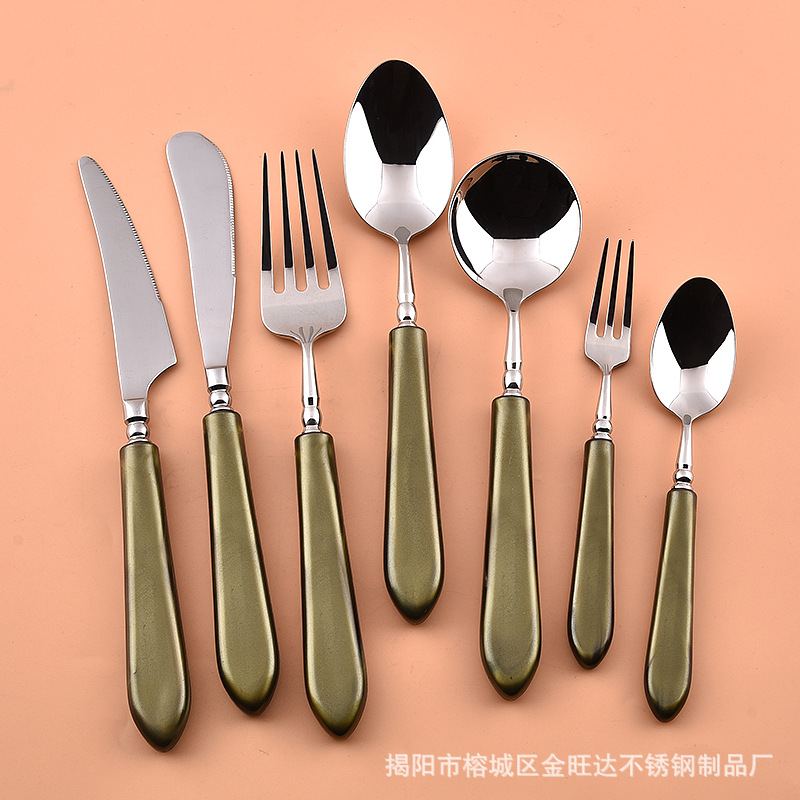 レトロ平ハンドルステンレス丸珠西食器亮光家庭用ホテルレストランステーキ刀フォークスプーンセット