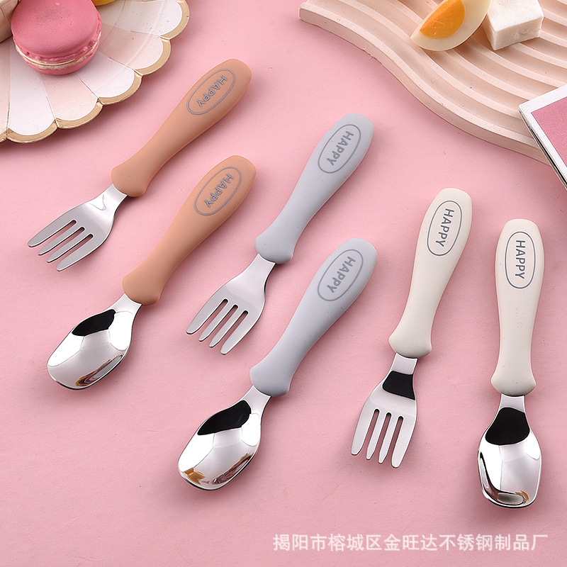 316ステンレスシリコンスプーン叉幼稚園児訓練食事飼育スプーン叉食器ベビー補助食セット