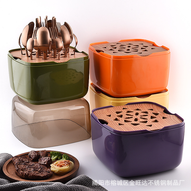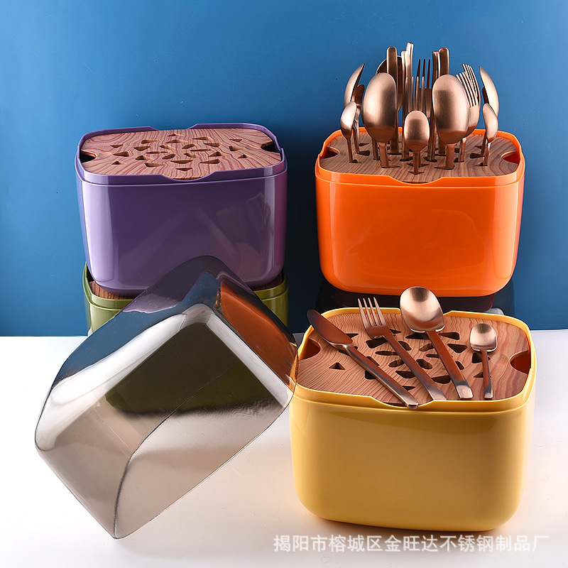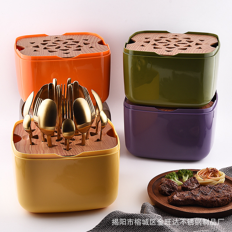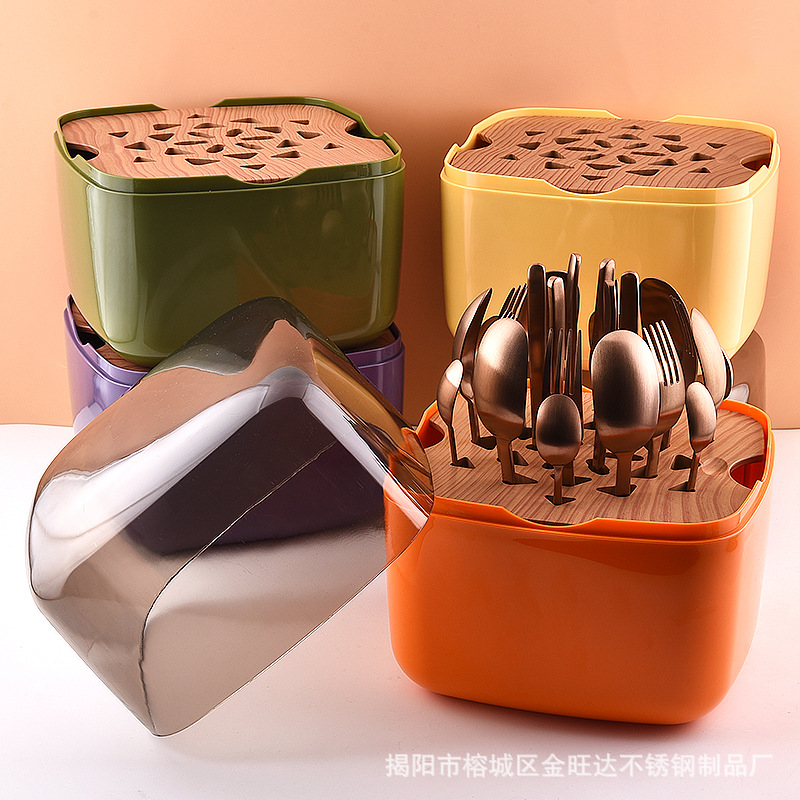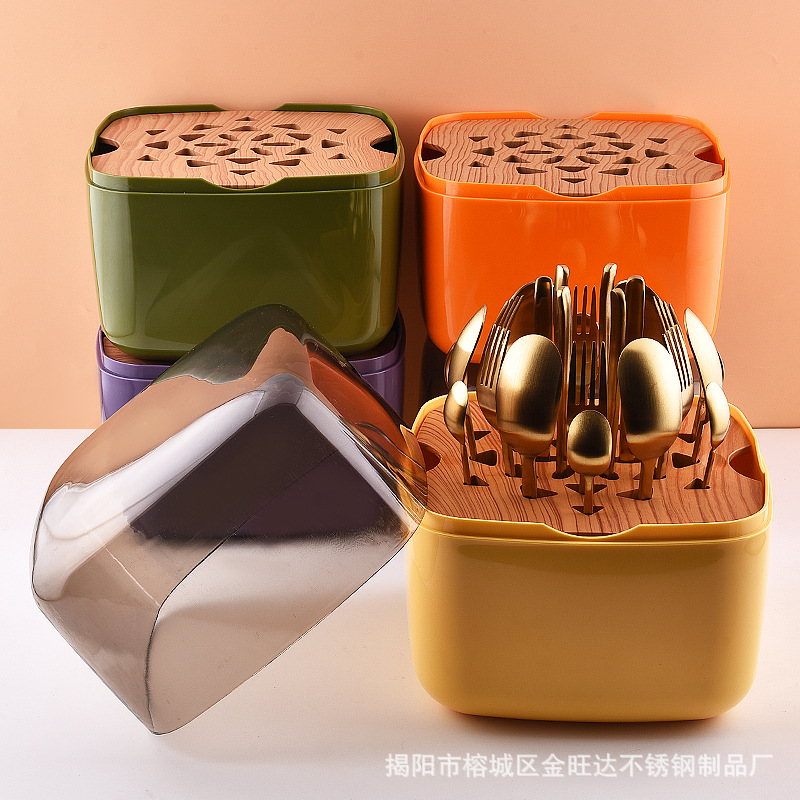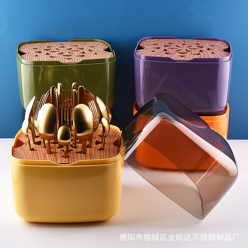 新品ゴールドナイフフォークスプーン食器lucky boxラッキー四角いボックスステンレスコーナー食器ギフトボックスセット