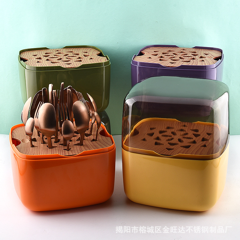 ラッキー角ケース24点セットカトラリーセットステンレス製曲げ柄カトラリーナイフフォークスプーンティースプーンローズゴールドluckybox