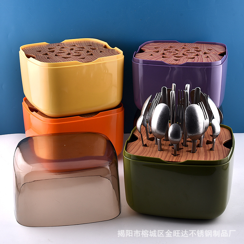 304ステンレス木柄フォークスプーン茶フォークスプーン箸家庭用食器セット