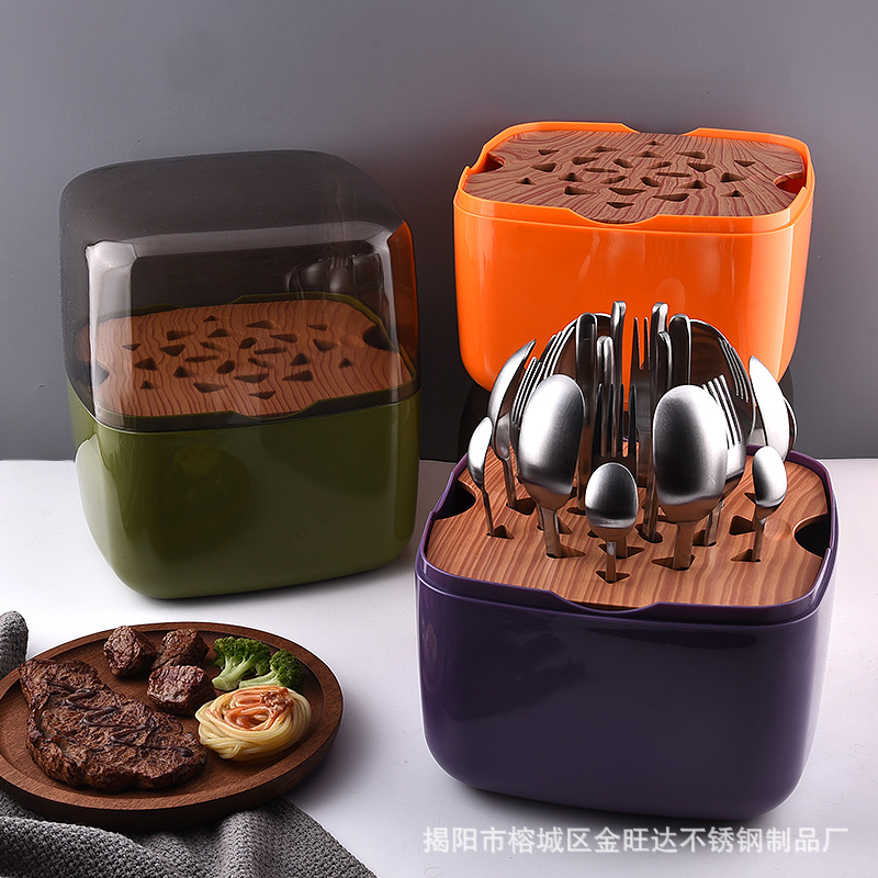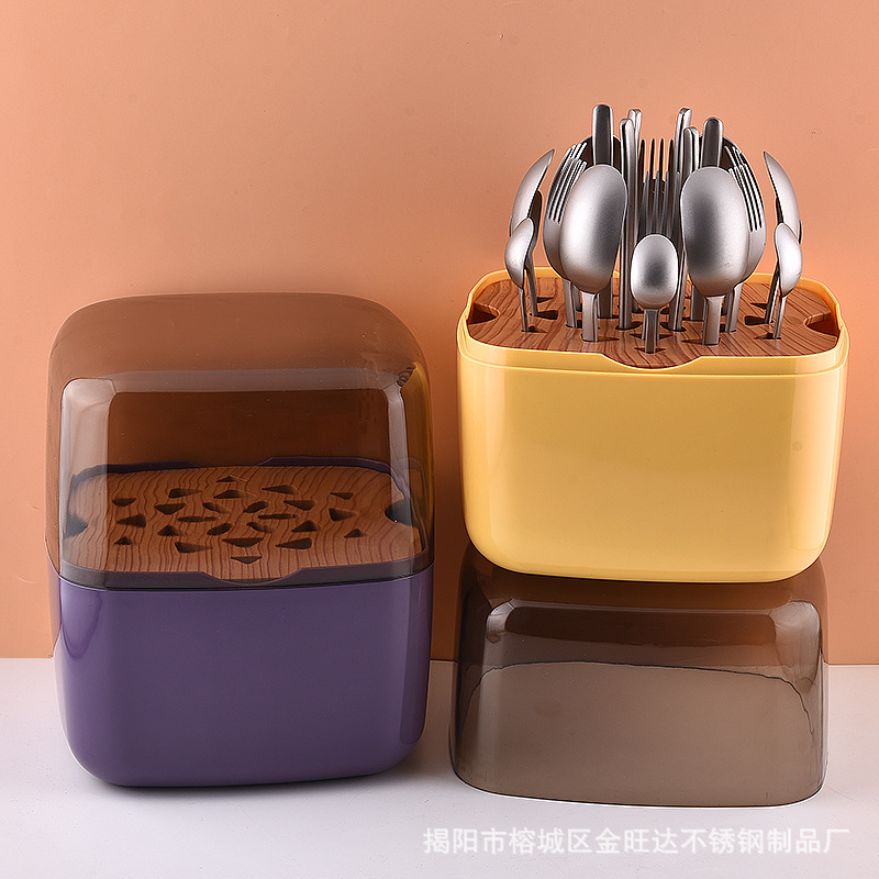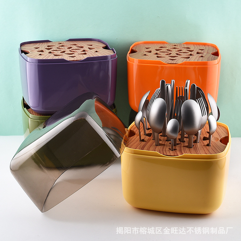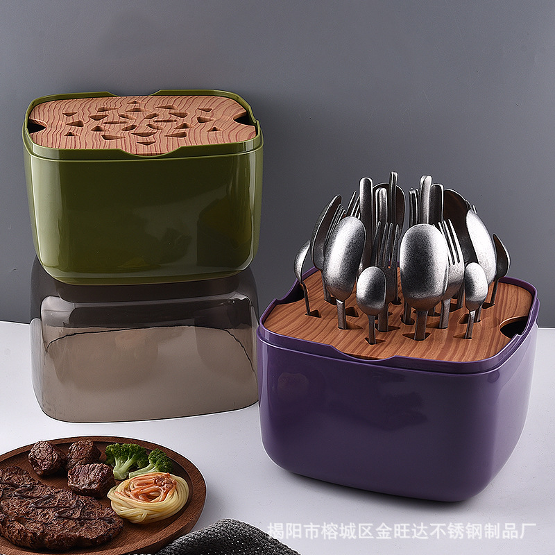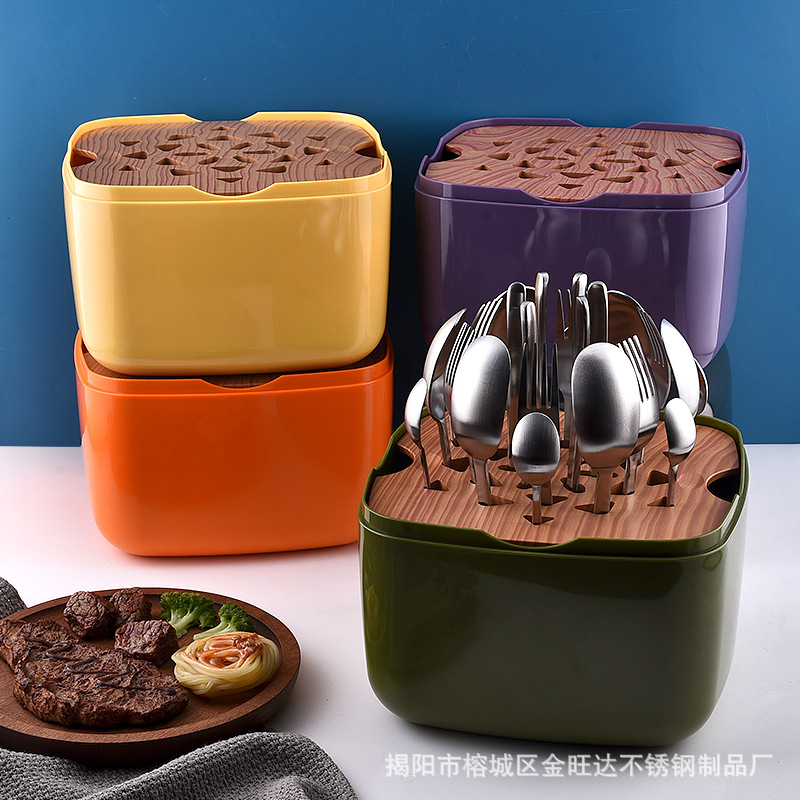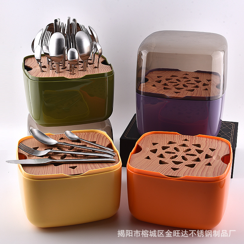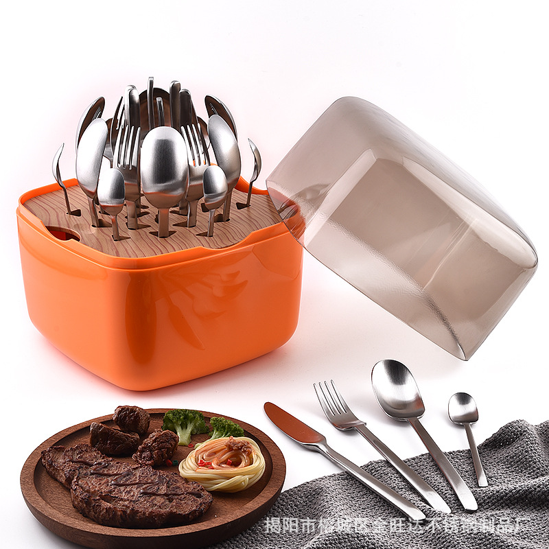 ラッキー角ケース食器セットクリアカバー430ステンレス製曲げ柄食器ナイフフォークスプーンティースプーン24点セット