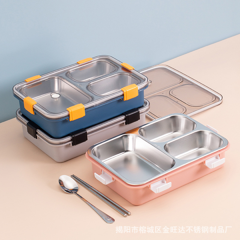 弁当箱304ステンレス弁当箱家庭用携帯注水加熱密封三格補助弁当箱スプーン箸