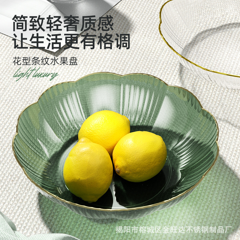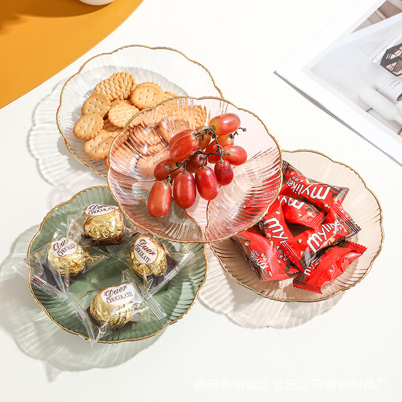 フルーツプレートPET透明花型ストライププレートins風家庭用スナックプレート果物かご金辺KTVフルーツプレート