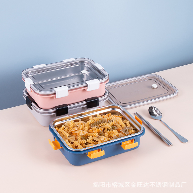 弁当箱304ステンレス弁当箱家庭用携帯注水加熱密封単格補助弁当箱スプーン箸