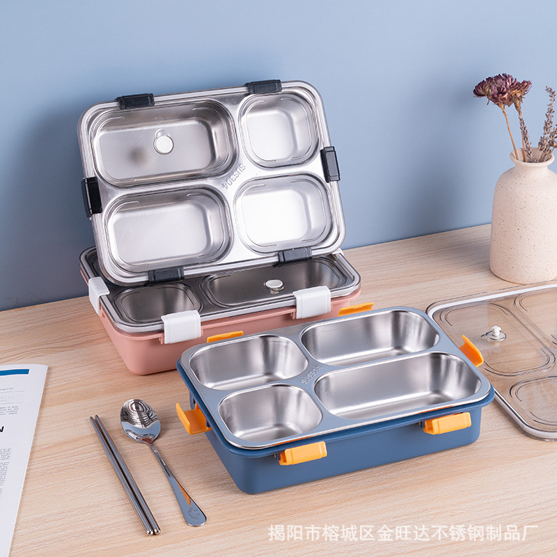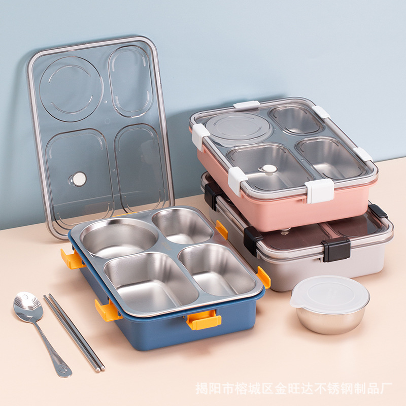 弁当箱304ステンレス弁当箱家庭用携帯注水加熱密封四格補助弁当箱スプーン箸スープ碗