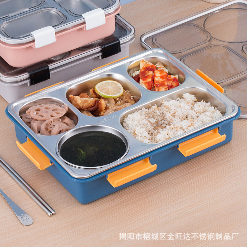 弁当箱304ステンレス弁当箱家庭用携帯注水加熱密封五格補助弁当箱スプーン箸スープ碗