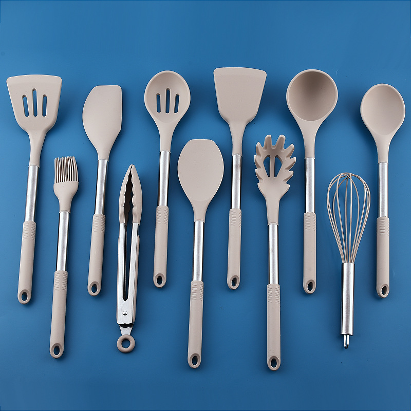 シリカゲルの台所用品12点セットのシリカゲルの鍋の台所用品の料理の炒め物のシャベルの木の柄の台所用品のセット