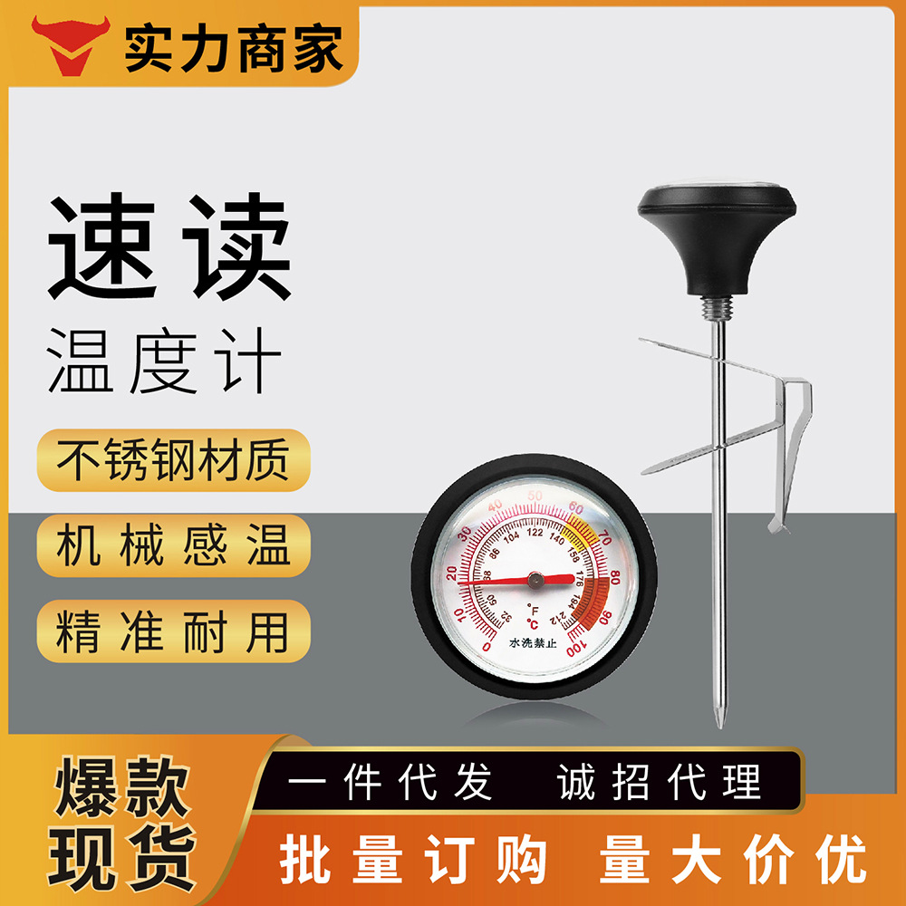開泰コーヒー牛乳食品温度計ステンレス製キッチンベーキングバーベキュー肉用防水温度計クリップ付き