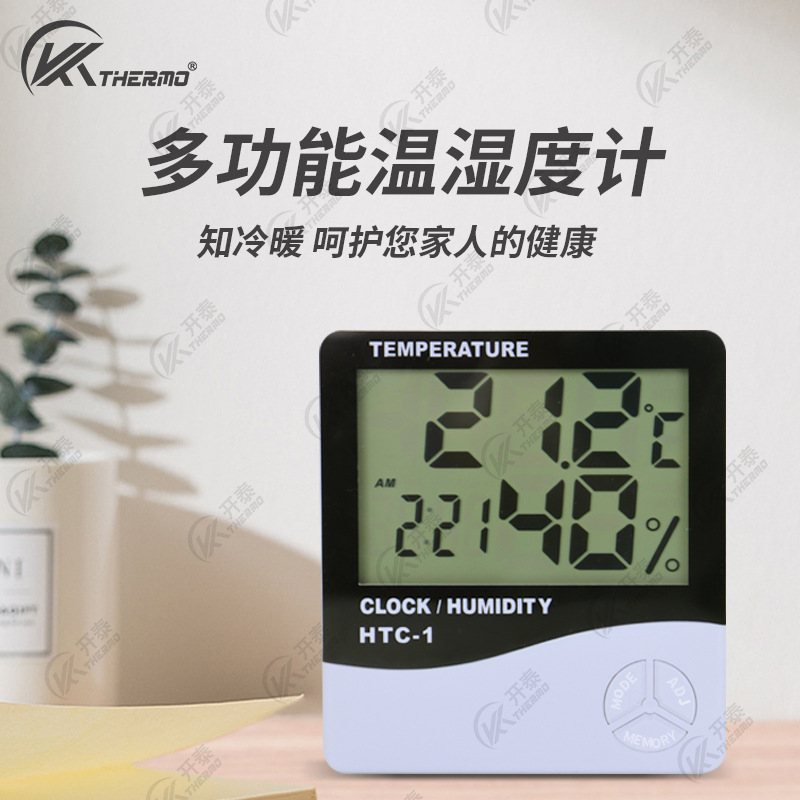 HTC-1室内電子湿度計高精度大画面デスクトップ目覚まし時計乾湿温度計家庭用湿度計
