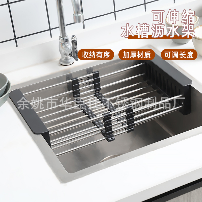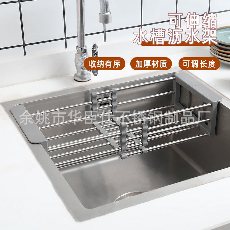 家庭用キッチン野菜鉢果物鉢水切り棚ステンレス伸縮食器棚を厚くして、洗濯棚を収納できます。