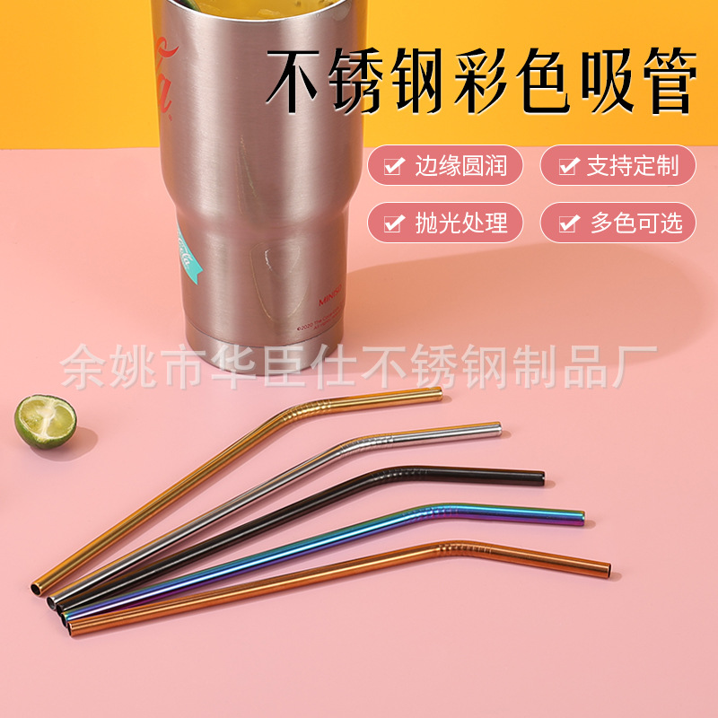 新品304ステンレスストローセットチタンメッキカラー金属ストロークミルクティー冷たいドリンクストレート曲げストロー
