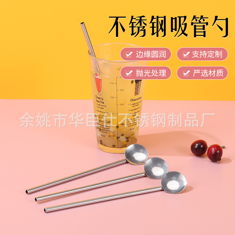 卸売り304ステンレスストロースプーン一体両用バー氷スプーン創意長柄攪拌飲料ストロースプーン