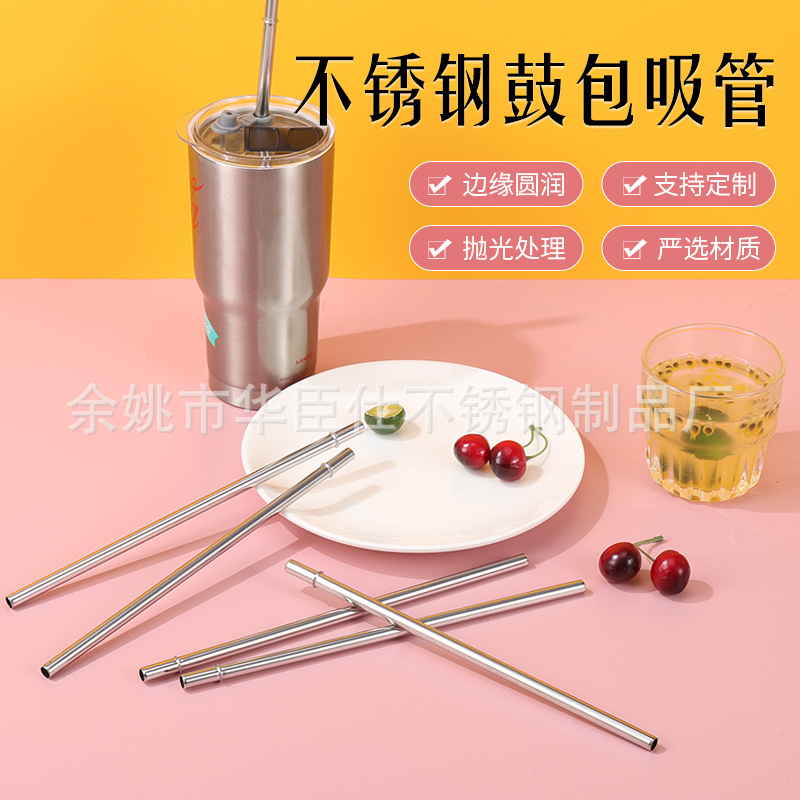 自動車カップのドラムバッグとバックル付きストローセット304ステンレス家庭用ミルクティーの冷たい飲み物を提供します。