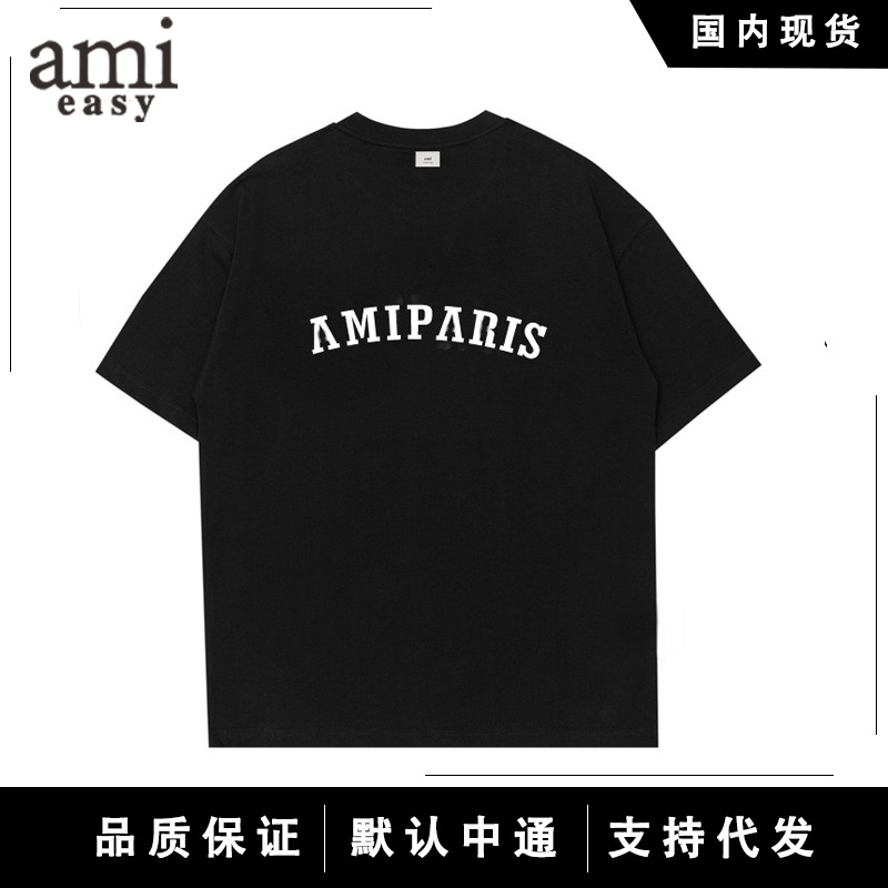 AMI&EANM トレンドスポットラウンドネックレタープリントピュアコットンメンズ半袖夏多用途ハイストリート Tシャツ若者