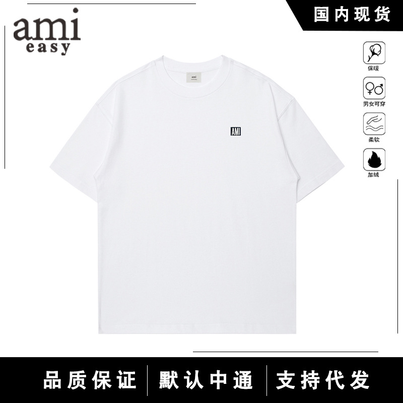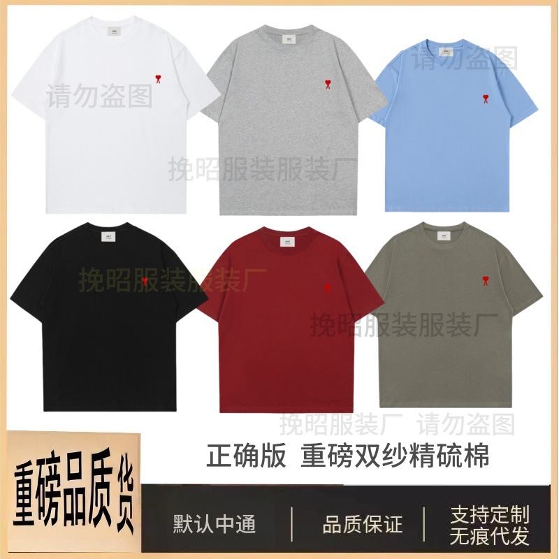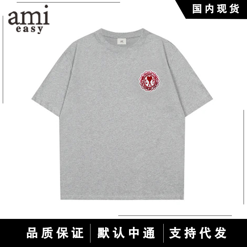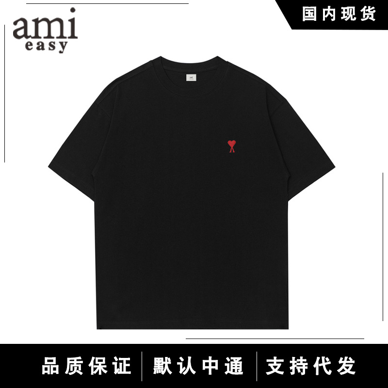 AMI&EASY 正しいバージョンのクラシックな小さな愛の刺繍半袖 Tシャツメンズ夏のトレンディなブランドルーズカジュアル多用途 Tシャツ