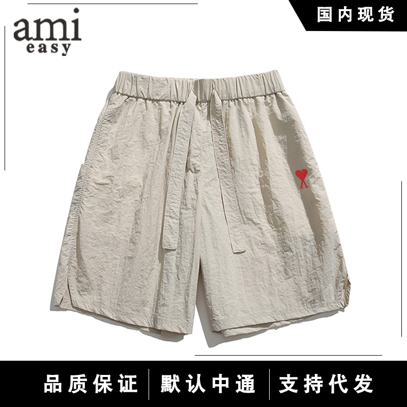 AMI&EASY トレンディなハイストリート愛刺繍アイスシルク防水速乾ショーツメンズ夏快適で多用途なスポーツ