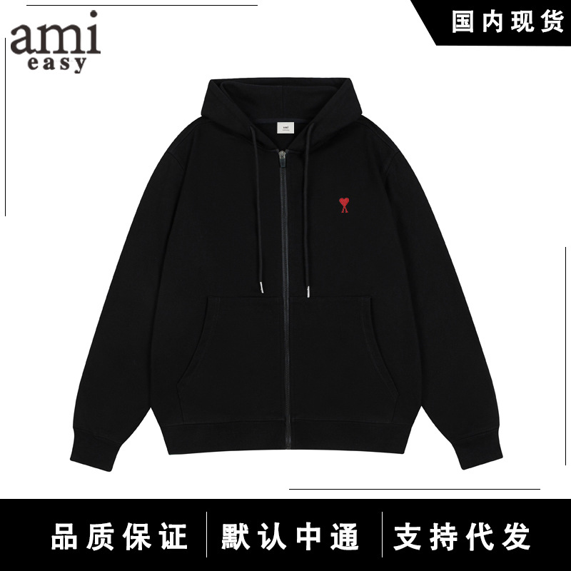 AMI&EASY ジッパーフード付きカーディガンスウェットシャツメンズトレンディブランド愛刺繍ファッションスポーツスウェットシャツジャケットカップル服