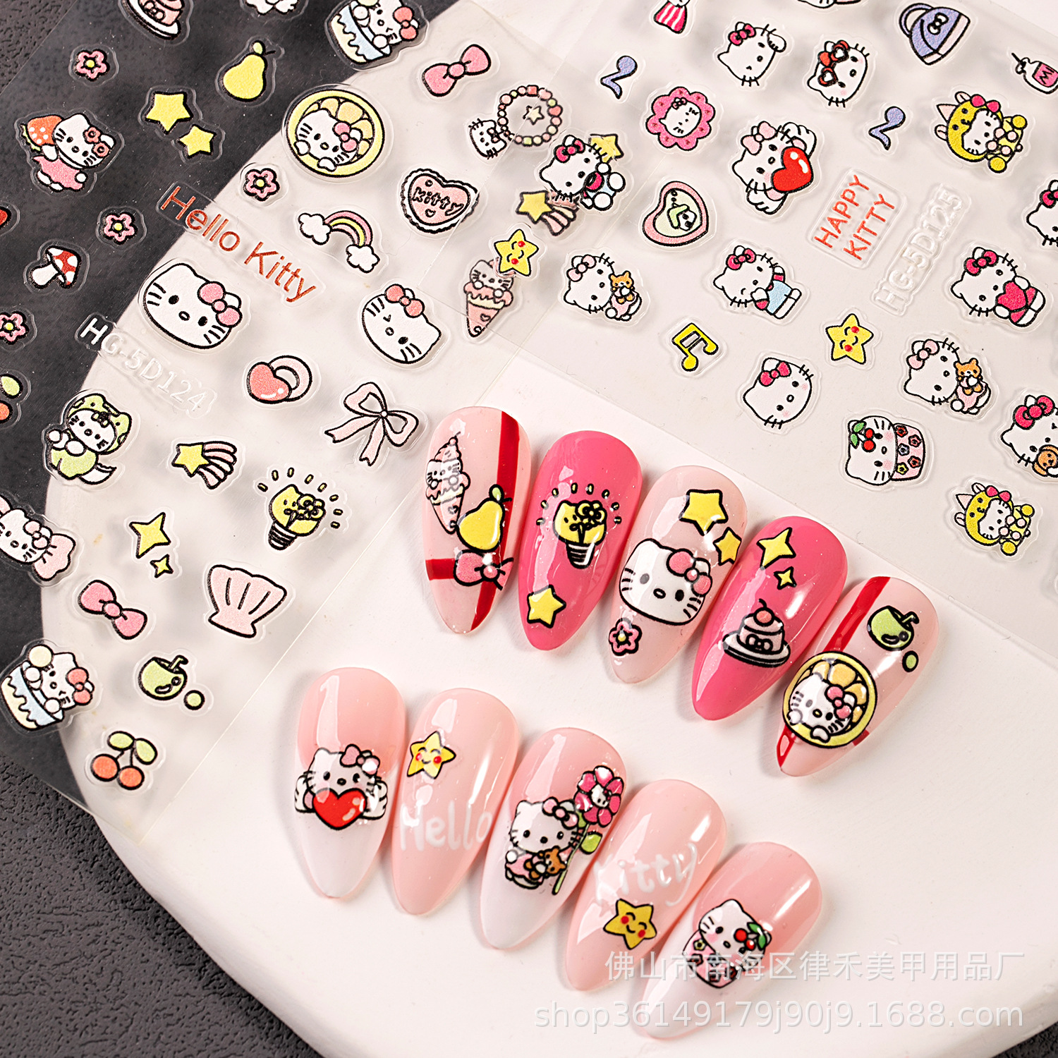 新品5d立体ネイルステッカーかわいい新年ハローキティカラフル花火かわいいloopy爪ステッカー
