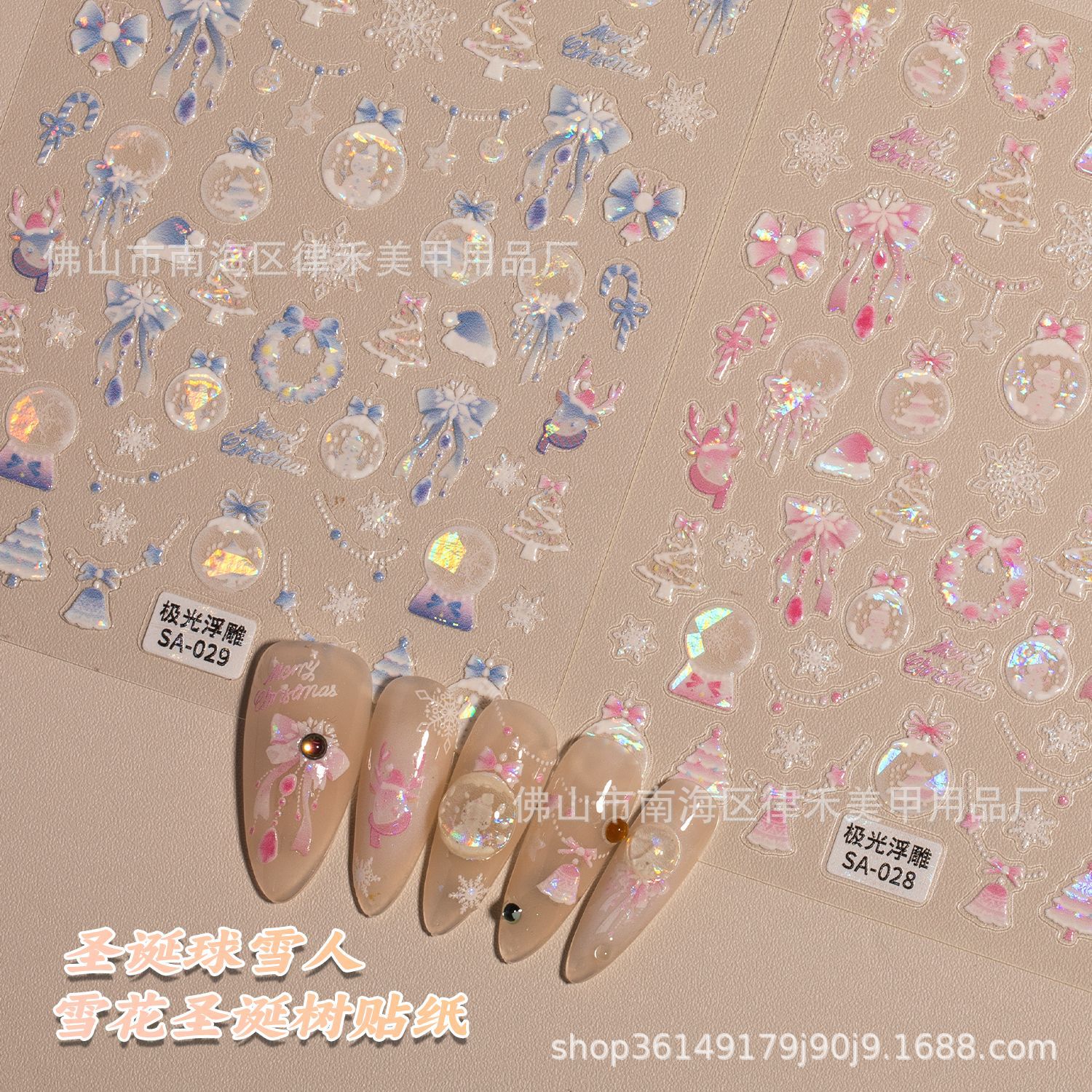 新しいネイルステッカー5dレリーフクリスマスヘラジカギフトボックスキャンディー漫画小さな白いウサギ雪だるまスノーフレーククリスマス