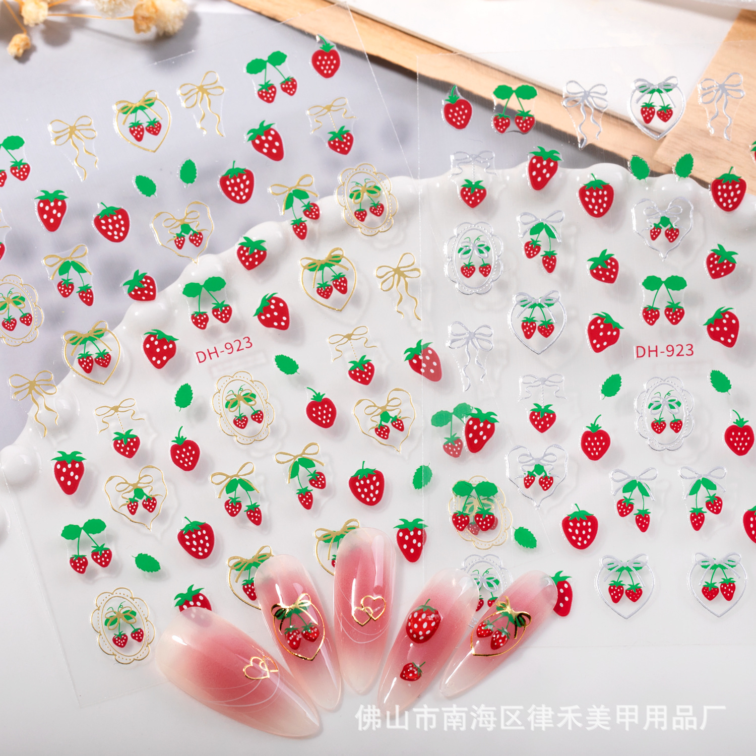 新しいマニキュアホットスタンピングレトロ日本のかわいいガーリーハートイチゴラブリボン粘着ネイルステッカー付き