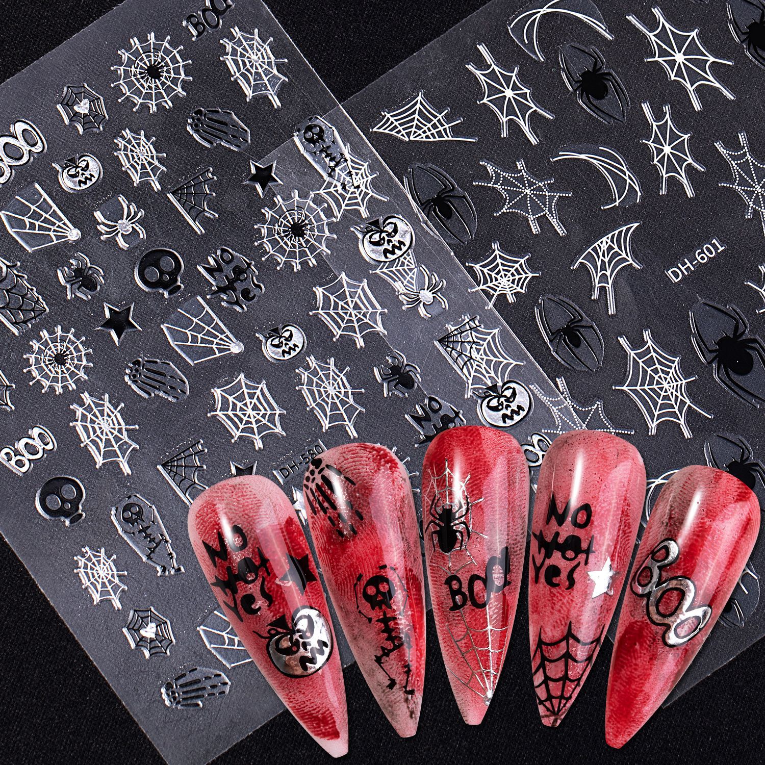 ネイルステッカーハロウィーン暗黒クモスカルカボチャ頭金銀クモクモの巣糸線シール