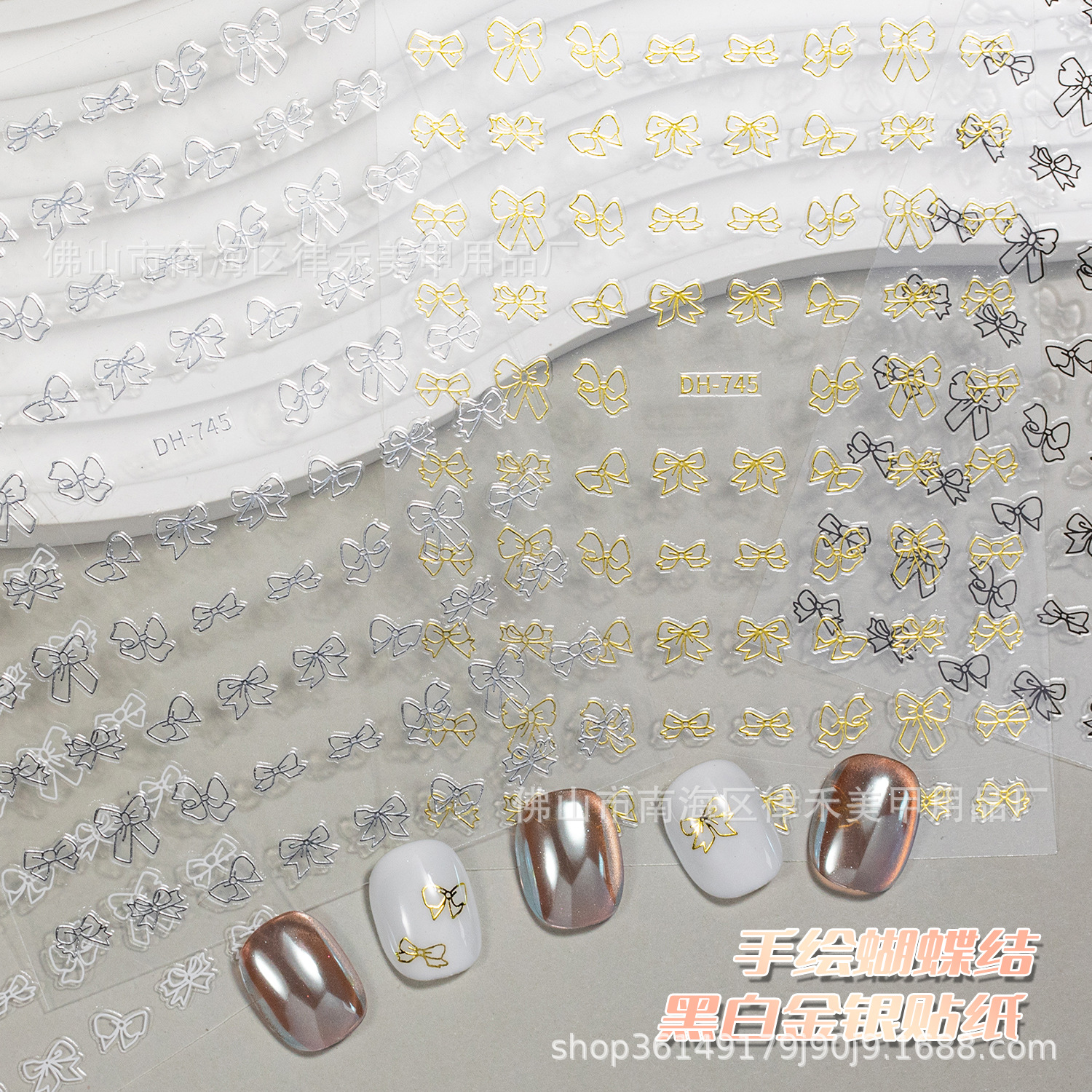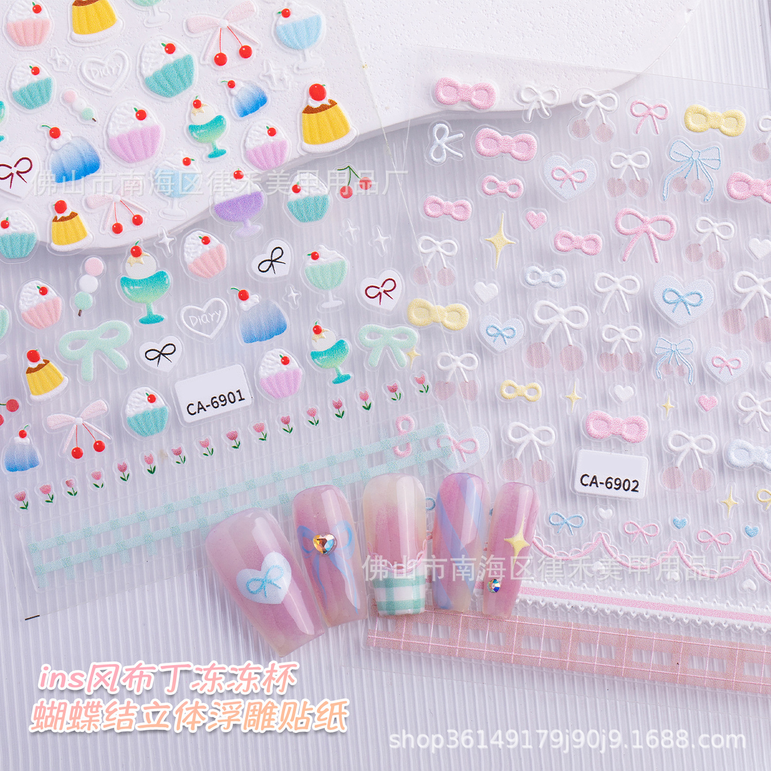 新商品のかわいいプリンのネイルシールは透かし彫りの愛の蝶結びのアイスクリームのさくらんぼの小さい花の爪のシールです。