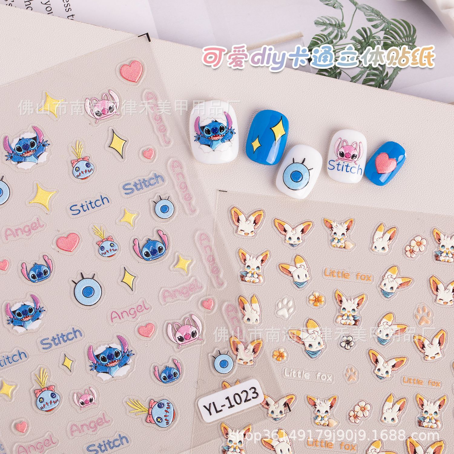 漫画かわいいスティッチのネイルステッカーの浮き彫りの立体かわいい白いウサギの子供のdiyの爪のステッカーのゴム