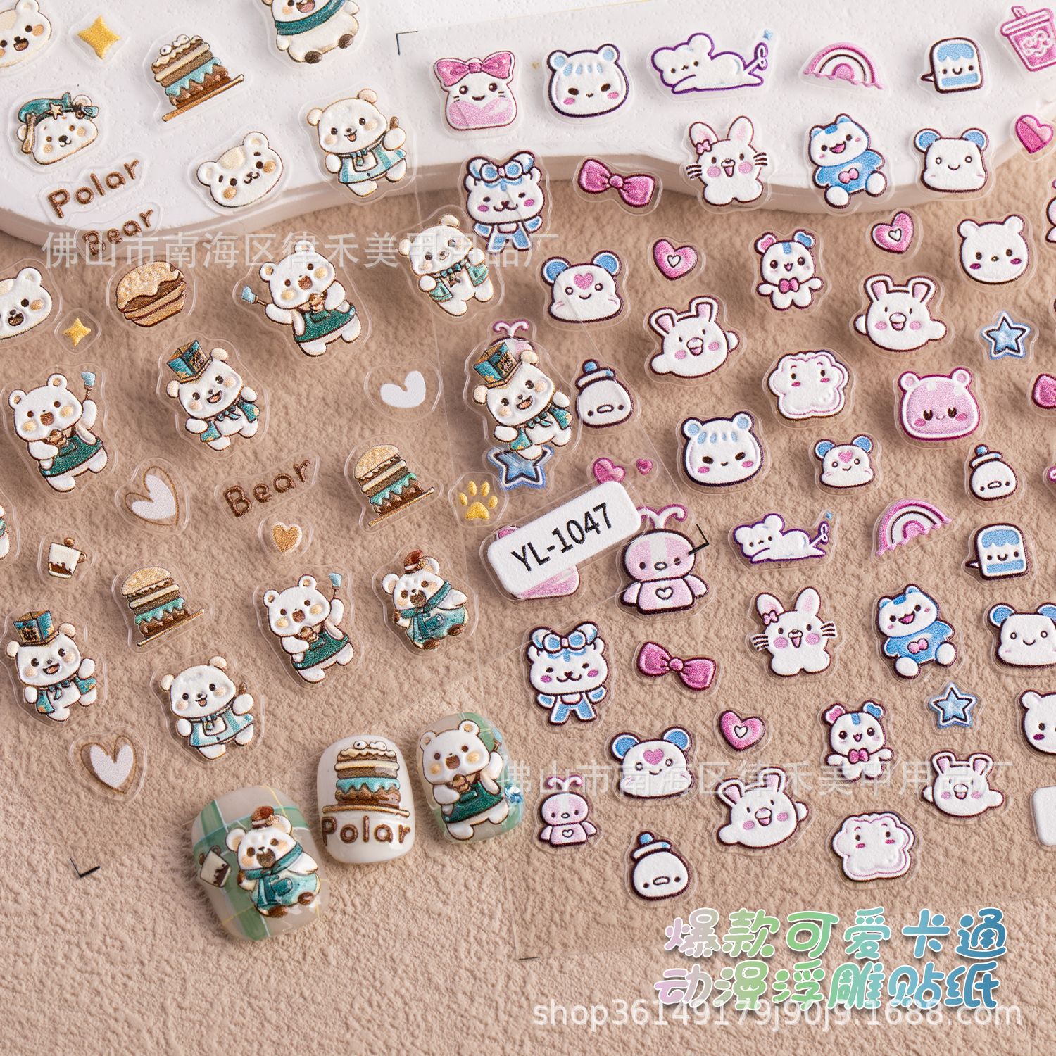 漫画かわいいアニメクマネイルアートステッカーエンボス加工立体かわいい笑顔愛ウサギネイルステッカー卸売