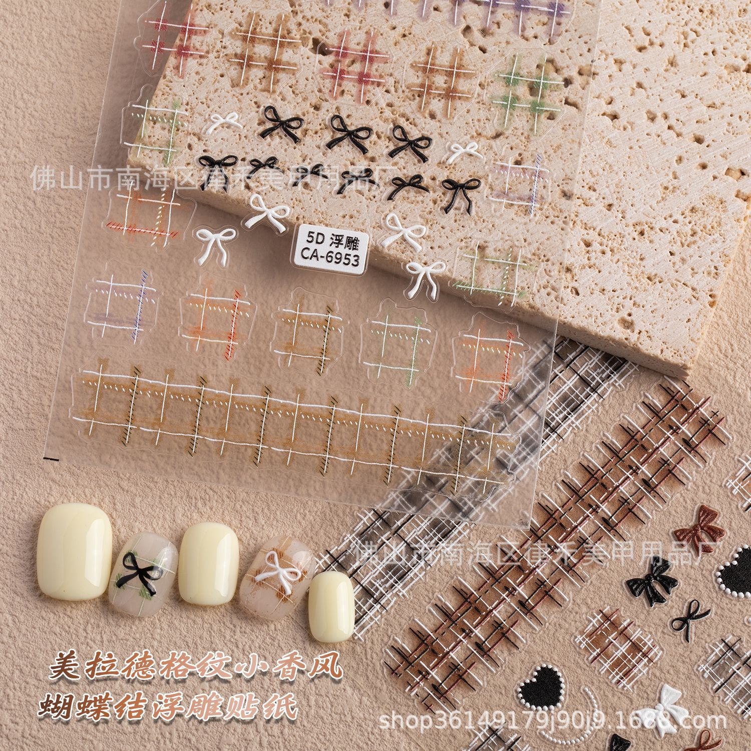 日系レトロ美ラード小香風ネイルシール浮き彫り立体透かし模様蝶結び小花爪貼り