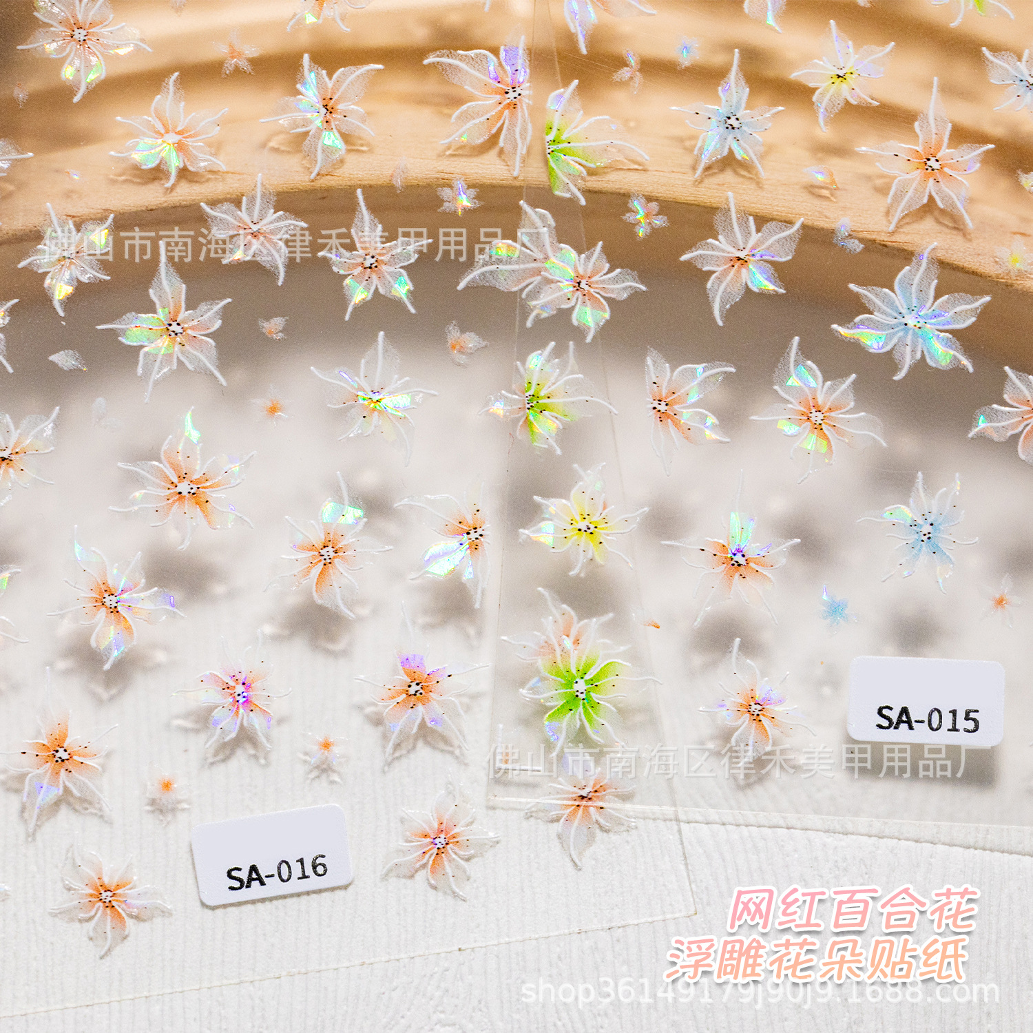 オーロラ仙気幻ユリ花ネイルシール貝殻光レリーフ甲爪に幻彩ネイルシールを貼る