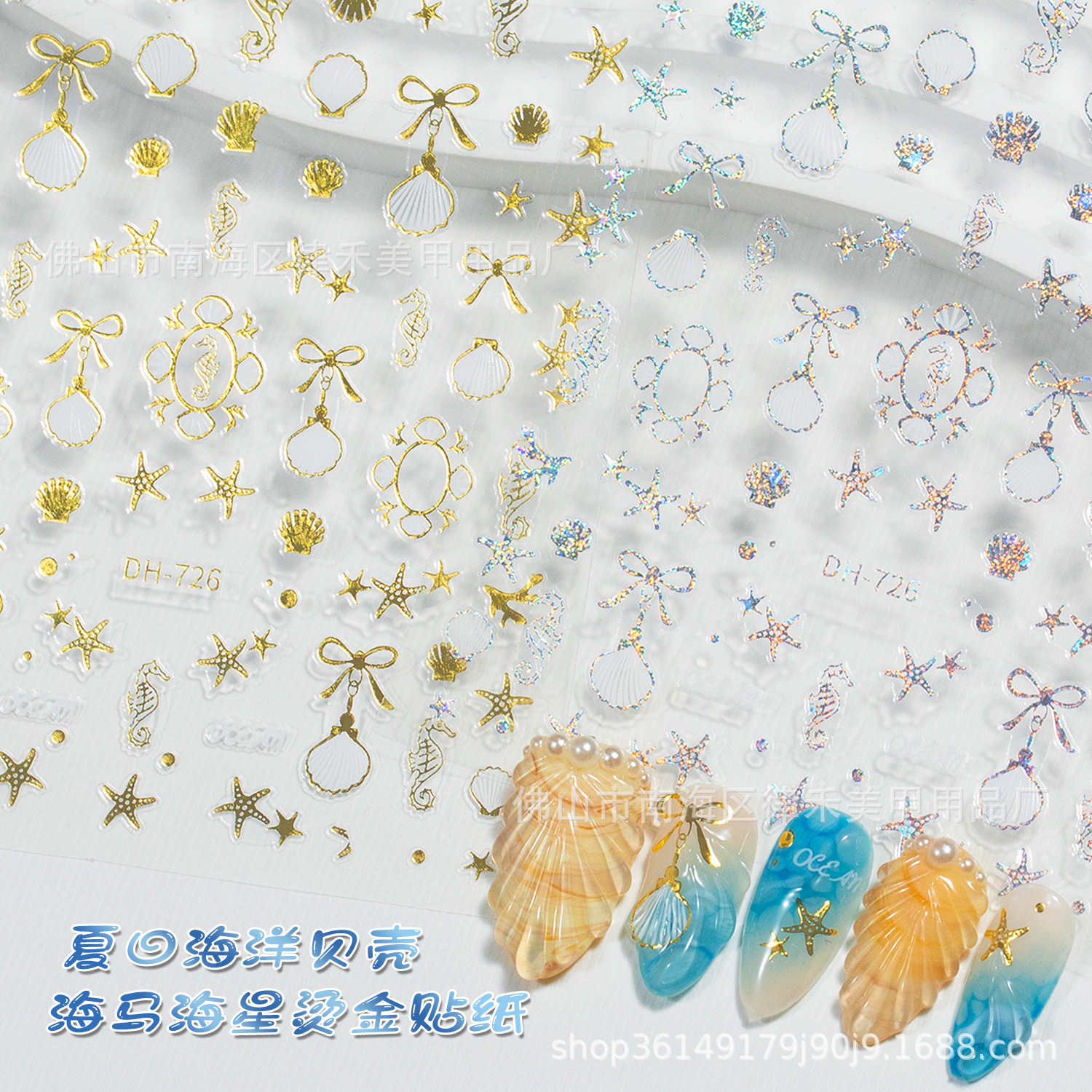 夏の海洋貝殻海星ネイルシールかわいい海馬透かし彫り蝶結び箔押しレーザー爪シール