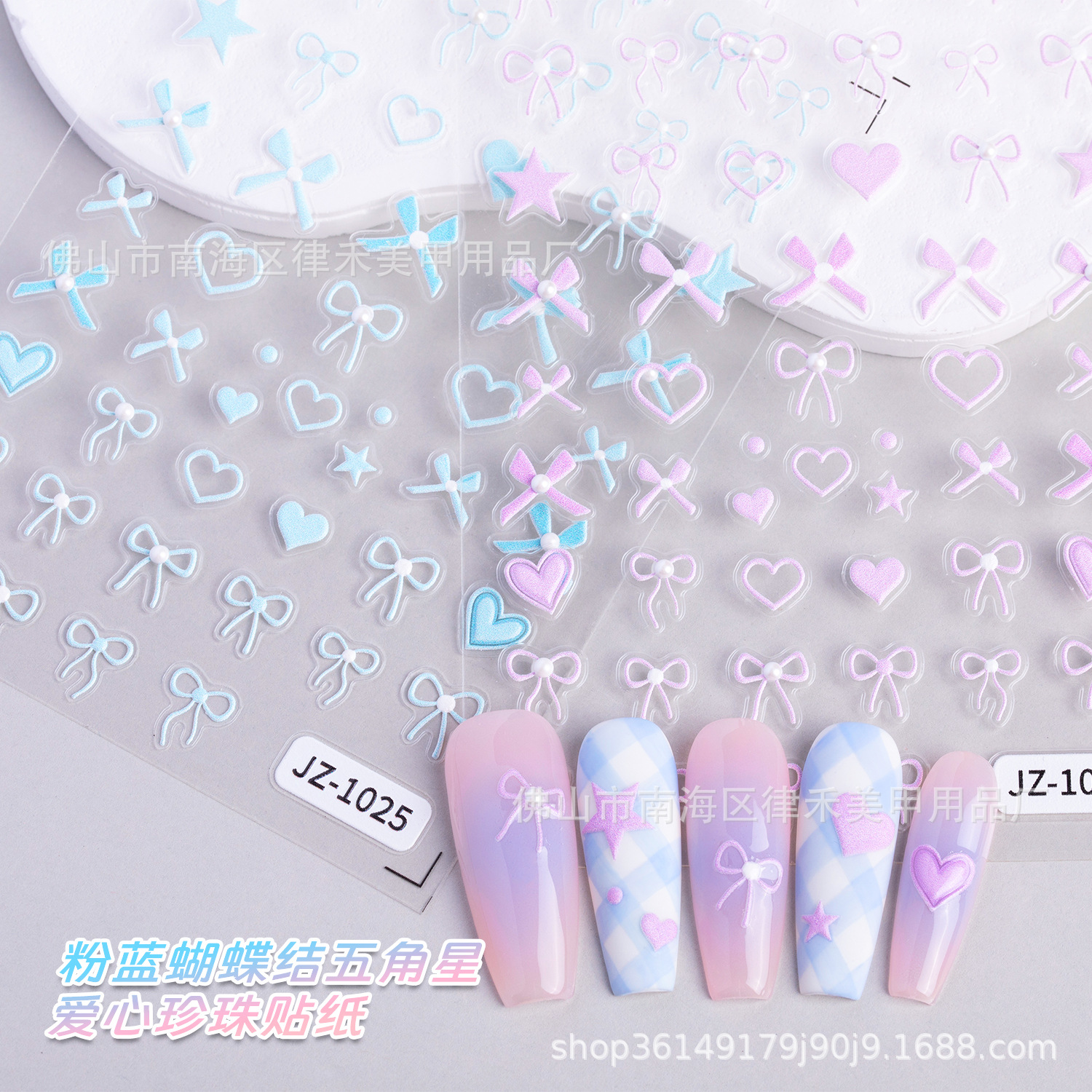 軽豪華高級真珠ネイルシール青ピンク愛リボン真珠立体浮き彫りネイルアクセサリー